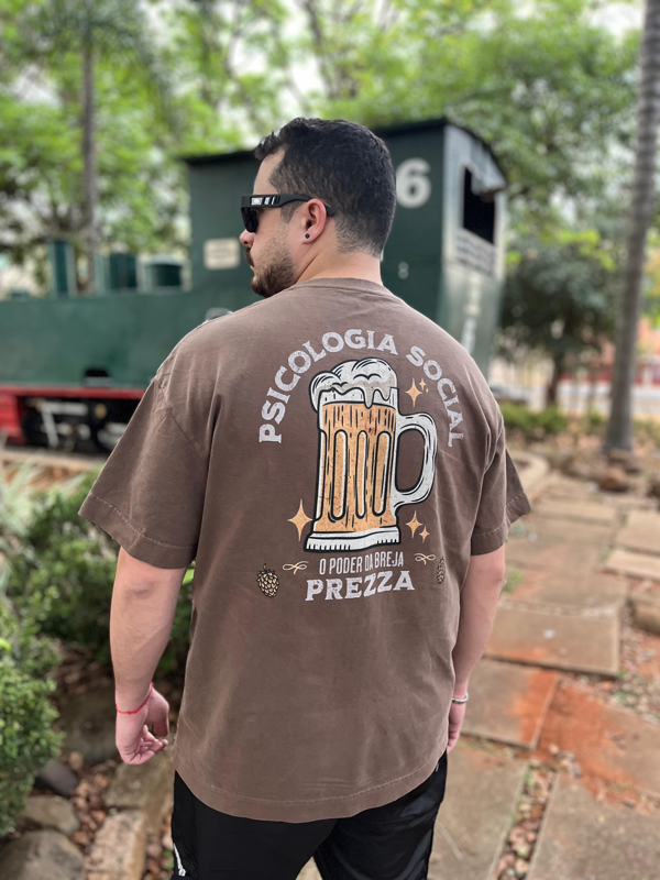 Camiseta Oversized Breja disponÃvel do PP ao XG Com uma modelagem Oversized exclusiva, ela passa por um processo de amaciamento e pré encolhimento, deixando um toque muito macio e uma qualidade única . Essa obra divina, conta com uma malha grossa e robusta, proporcionando um caimento sem igual. Confeccionada com malha 100% algodão.